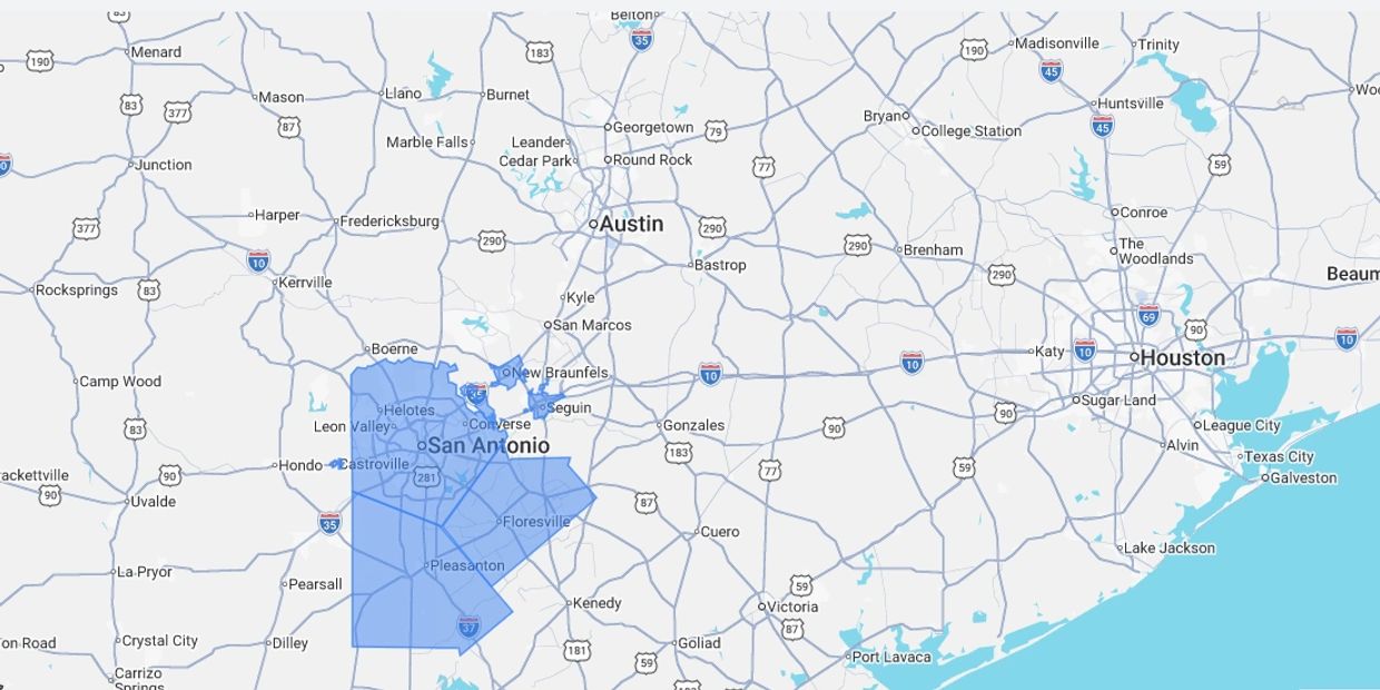 Based on geography and typical service radius from the business’s base around Pleasanton / San Antonio: